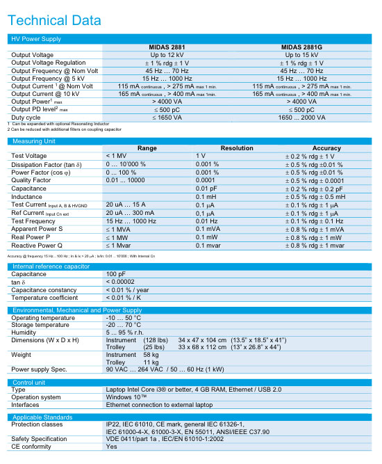 기술 사양 요약 | 출력 전압: 최대 12kV (2881), 15kV (2881G) |